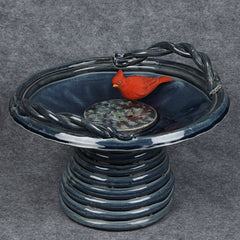 Set this beautiful blue coiled bowl out in your garden for some magical landings for the birds. The little ones will love sitting on the coiled handles before settling in for a nice drink. Also looks great holding a large center candle and some colorful stones.
