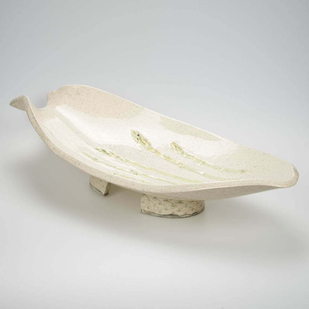 This curving creamy asparagus platter will serve any dish. Will also work nice for potpourri, pinecones and candles.