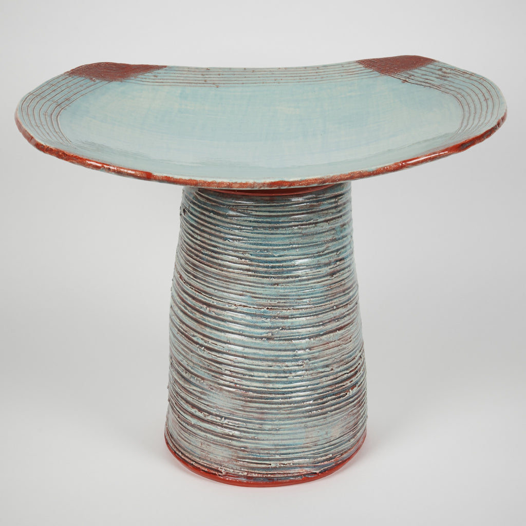 This cool, crisp birdbath will look beautiful in your garden. The base is rolled coils with red veins and covered in Tahitian blue.